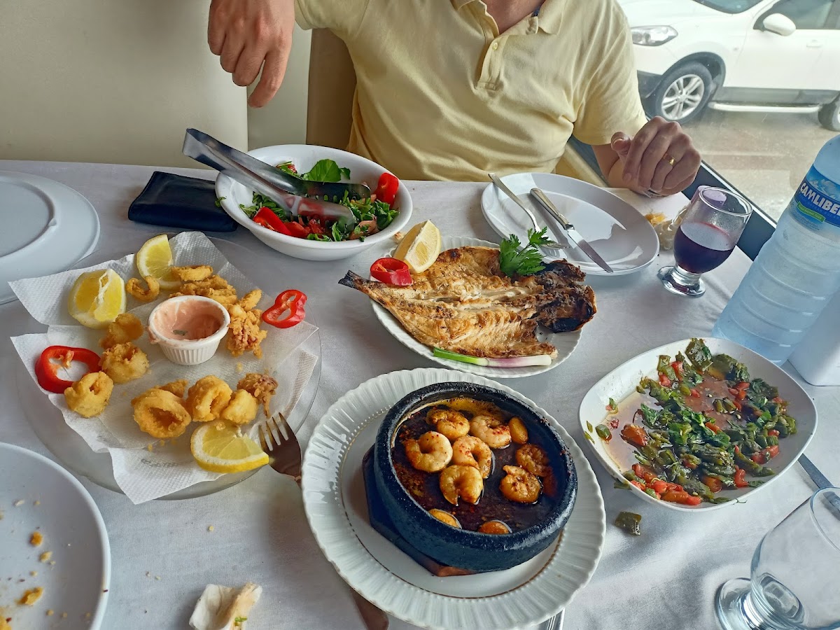 The restaurant’s signature dishes are a must-try for any food lover. The Karides, or shrimp, are perfectly seasoned and grilled to perfection, offering a burst of flavor with each bite. Another standout on the menu is the Grilled Fish, which showcases the best of fresh, local seafood. For those craving something hearty, the Fried Potatoes and Salad make the perfect side dish, pairing wonderfully with any main course. Don’t miss out on the restaurant's special Çökmez, a dish that has become a signature item, offering a unique twist on traditional flavors. For a more adventurous option, try the Şeyhudi, which is a flavorful choice that reflects the local culinary heritage.